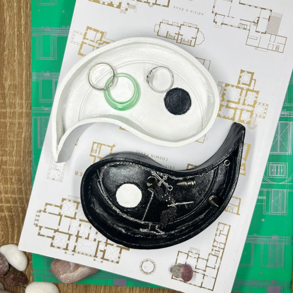 În plus, setul aduce un element estetic aparte prin contrastul clar alb–negru, care evidențiază simbolul Yin–Yang. Pe lângă funcționalitate, tăvița devine un mic detaliu decorativ, potrivit pentru orice încăpere și pentru a mentine organizate obiectele dragi tie